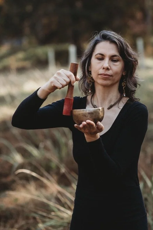 For more than eight years, Amanda has also immersed herself in the world of sound. Using gongs, Tibetan and crystal bowls, bells, crystal harp, and vocal toning, she leads individual and group sound journeys that invite clients into deep states of rest and dream-like discovery. These sessions are less about performance and more about resonance—how vibration interacts with the body’s innate intelligence to reveal imagery, feeling, and clarity.