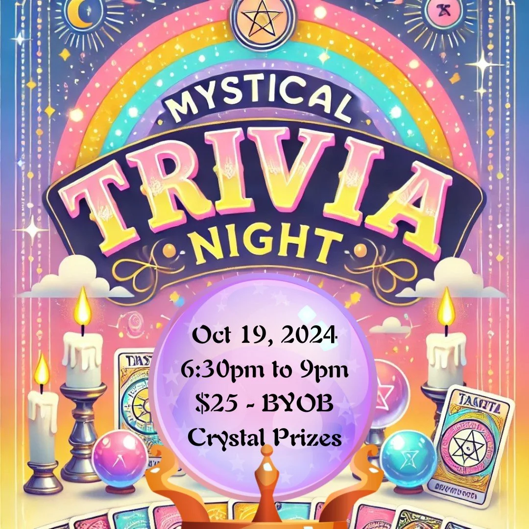 Join us for a Mystical Trivia Night, where the arcane meets the brain! Test your knowledge of the mystical and the magical in an enchanting atmosphere. Crystal prizes await those with the sharpest wits, adding a touch of magic to your evening. Bring your own beverages to enjoy while you delve into the mysteries of the night. Get ready for a fun-filled, spellbinding experience that will leave you wanting more!