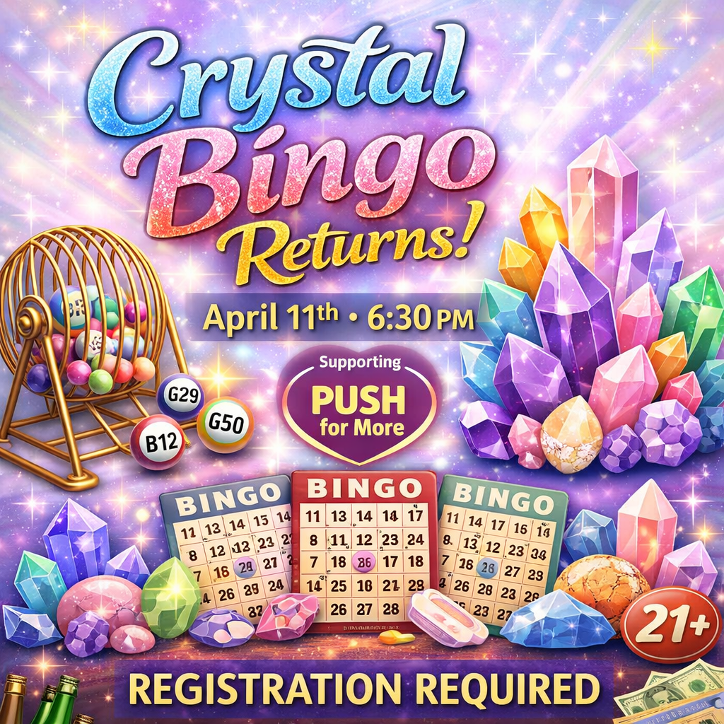 Our last Crystal Bingo Night was such a blast that we’re doing it again! Thank you to everyone who came out to support PUSH for More and helped make the evening so magical. Because of the incredible response, we’re bringing it back for another night of crystals, laughs, and community.